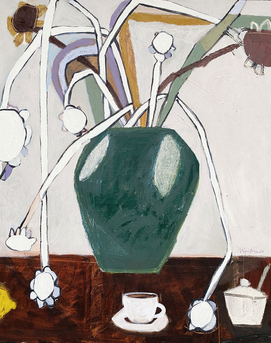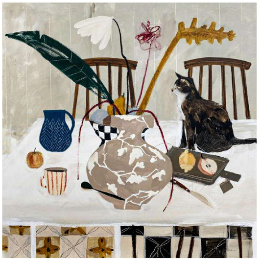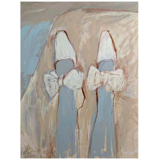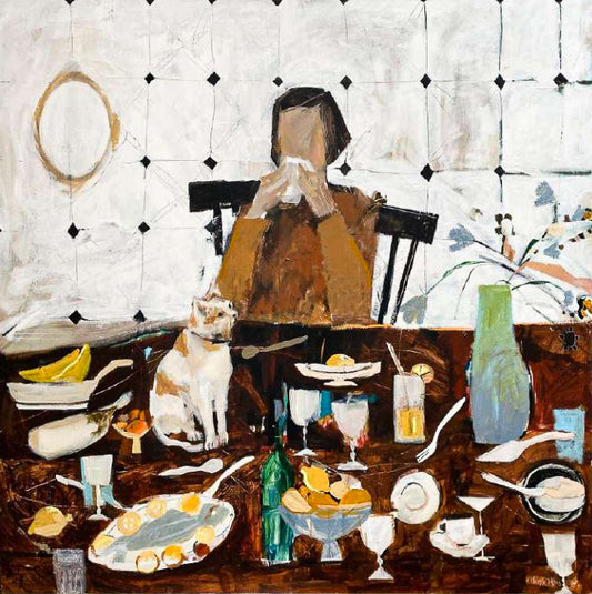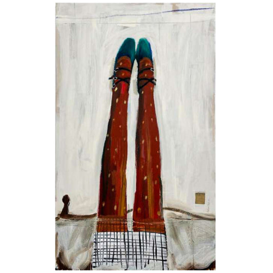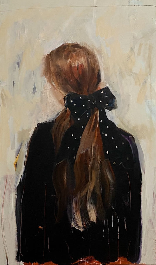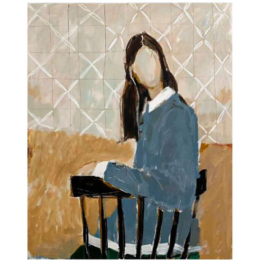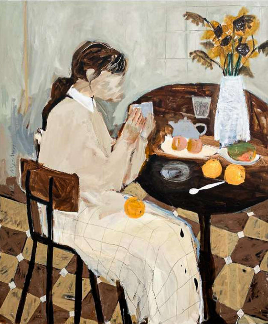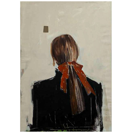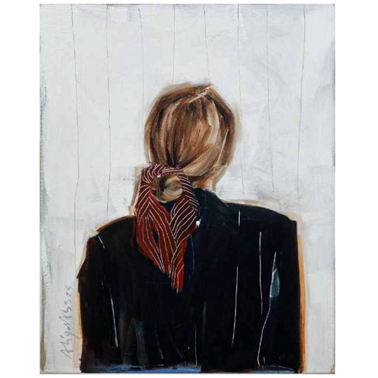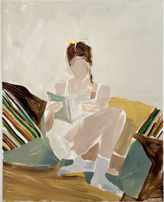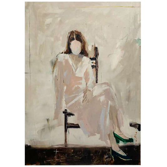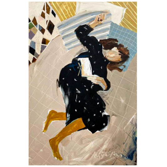 Aliya Abs created this exclusive collection from her memories of her stay in Paris. Her subjects are often depicted in vintage or historical settings, and the absence of facial features allows viewers to project their own emotions and interpretations onto the figures. Fragmented, childish, colorful, Aliya Abs' compositions breathe a sense of soft melancholy, a delicate perfume of temps perdu. Young girls are awkwardly posing, unsure of their postures, unsure of the game they should be supposed to play.