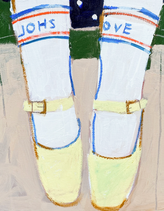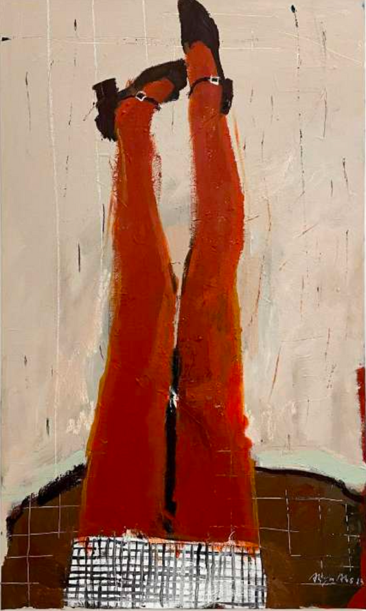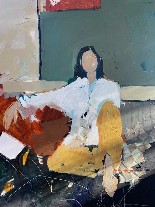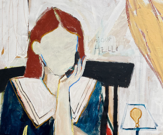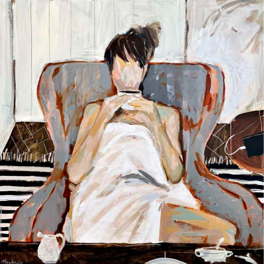 Aliya Abs created this exclusive collection from her memories of her stay in Paris. Her subjects are often depicted in vintage or historical settings, and the absence of facial features allows viewers to project their own emotions and interpretations onto the figures. Fragmented, childish, colorful, Aliya Abs' compositions breathe a sense of soft melancholy, a delicate perfume of temps perdu. Young girls are awkwardly posing, unsure of their postures, unsure of the game they should be supposed to play.
