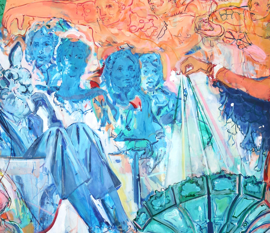 The evolution of my paintings is truly labyrinthine. As an artist, my color palette is inspired by the rich tradition of Persian miniature art. This tradition has shaped my ability to tell complex narratives using elaborate symbolism. During my studies and time in the Western art world, I embraced the freedom of expression found in the Cobra movement, integrating it into my practice. Through a progressive fusion of compositional signs and uninhibited exploration of gestures, calligraphy, and layered elements, I deliberately move away from mere representation and avoid being confined to a simple illustration. This intentional approach breathes life into my works, offering viewers a more complex and ever-evolving experience. While my emblematic figures - childhood toys, carousels, whimsical vehicles, crocodiles, faces flirting with the grotesque, ethereal ghosts in vibrant colors, birds, fish, musicians, vases, flowers, dogs, and chariots - continue to appear, they become entangled in a whirlwind of lines and colors that infuse my paintings with undeniable vibrancy. However, my artistic evolution goes beyond the subjects I represent. It embraces the very essence of painting - its historical significance and contemporary relevance. I am committed to the challenge of incorporating elements from my personal education, imagination, and diverse cultural influences into a dialogue with the materiality of paint itself. This complex interaction gives rise to rich layers of meaning, inviting contemplation and evoking a sense of silence and absence within the painted spaces. At times, architecture merges with the human form, evoking fervor, rigidity, or an intriguing sense of otherness. Sensuality permeates my work, manifesting through energetic brushstrokes, vibrant colors, and fluid lines. Bodies intertwine on the surface of the painting, evoking the intermingling of childhood nostalgia and the dizzying depths of experience. Through this dance between eros and thanatos, my art becomes an ode to the power and vitality of color.