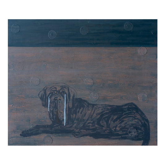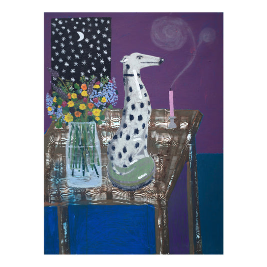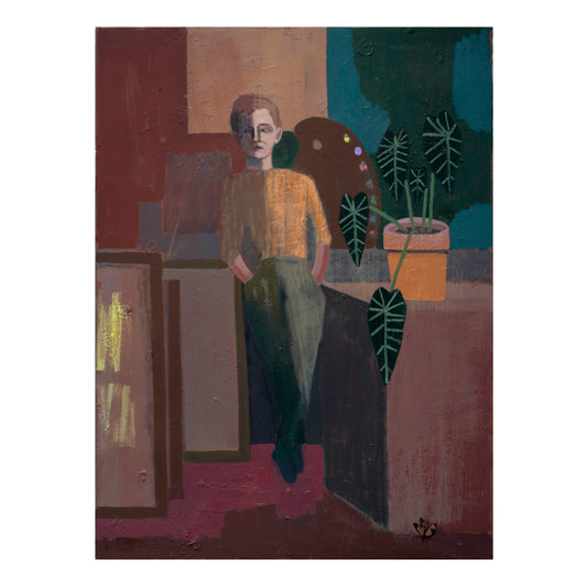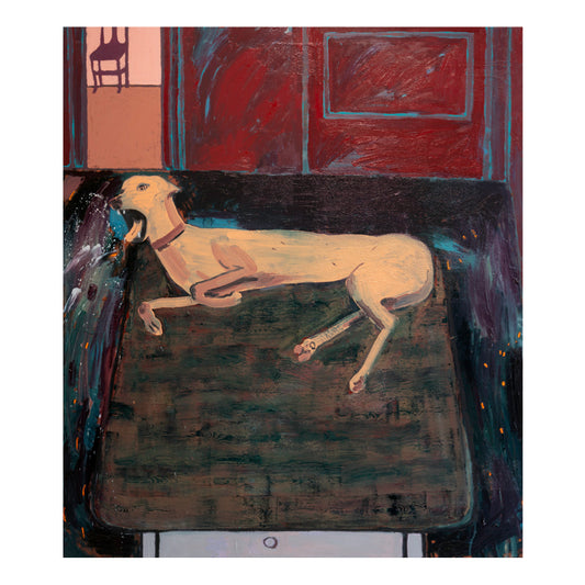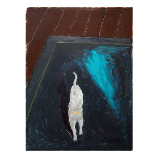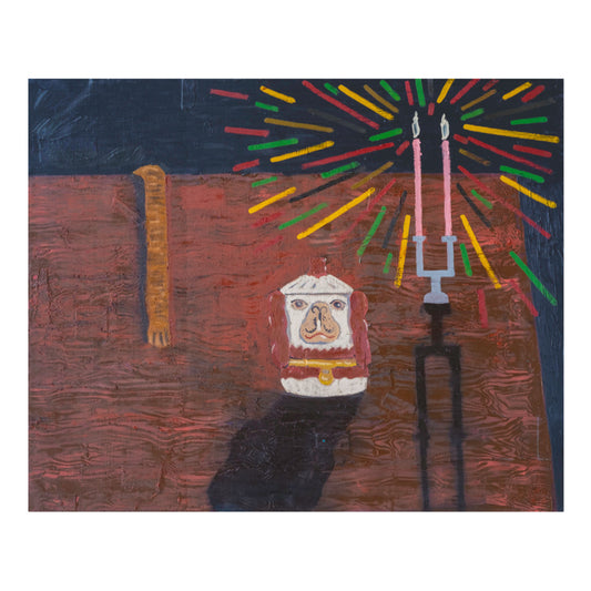 Fergal Styles’s practise is centred around drawing and painting. Nominally a figurative painter, he employs a wide variety of media to create images specific in detail, but that feel abstract in aggregate. In his seeming adherence to the traditional categories of figurative painting, we are presented with a world that appears bizarrely normal. There are reoccurring motifs aplenty, of cats, dogs, potted plants, and domestic interiors, yet his use of materials and approach to subject matter is playful and irreverent, giving far more weight to feeling through the materials, rather than bowing before trivial facts. His compositions evolve intuitively with each passage of paint, or layer of collage, responding to the last. It is a vision of the world appears, intensely saturated, emotional, intimate and even still mysterious.