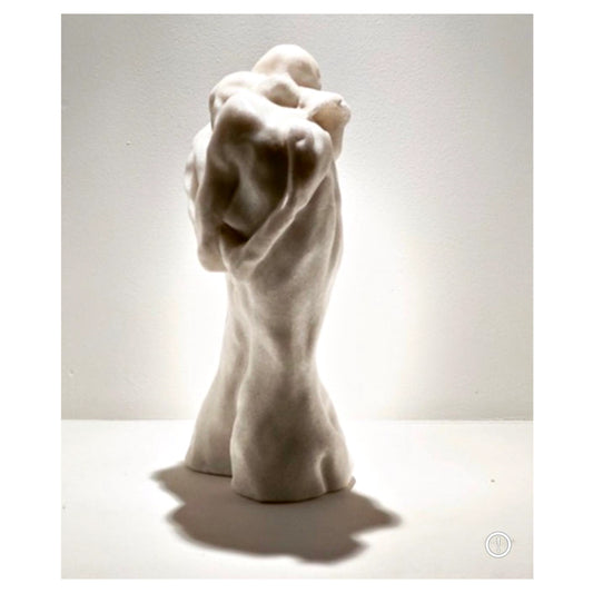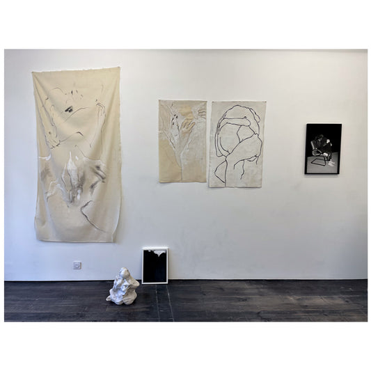An intimate theater that brings together the sculptor and painter Eva Claessens and the photographer Bérangère Fromont. The embrace, an in-between, a space with uncertain contours, where the bodies are both one and the other as well as an intermediate, ambiguous time, a sign of beginnings and endings.