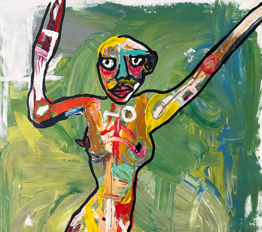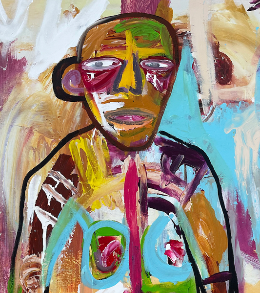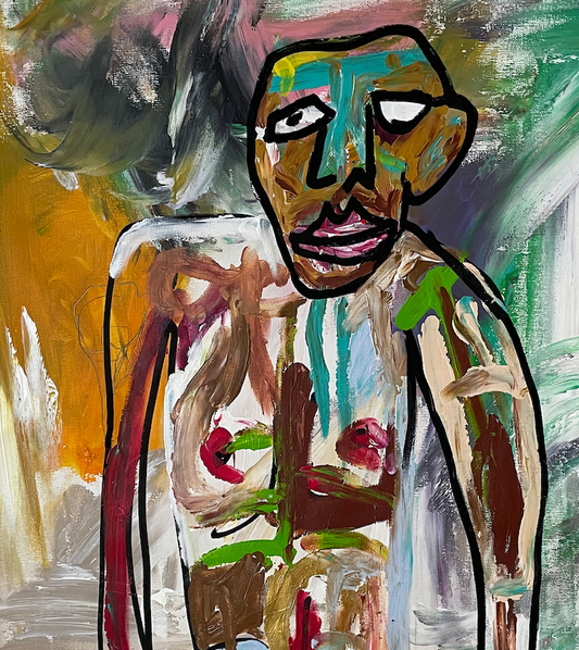 With powerful strokes and bold colors, his portraits take us from joy to the deepest anguish, from doubt to playfulness, with remarkable ease. Behind each of these paintings lies the quest to recollect an identity.