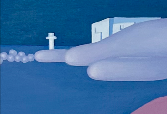 attached. I love the deeply original visions that the artist brings to life, and the form that they take. Taste, I think that’s the right term. Because these works in appeal to all the senses, they are truly synesthetic. The pastel tones that the artist displays on the canvas are soothing, she needs this tranquility, but they also remind me of something, something sweet, and in particular the Russian, this praline pastry, originating from Oloron Sainte Marie, which we taste in the Basque Country, notably at the Miremont tea room in Biarritz.”