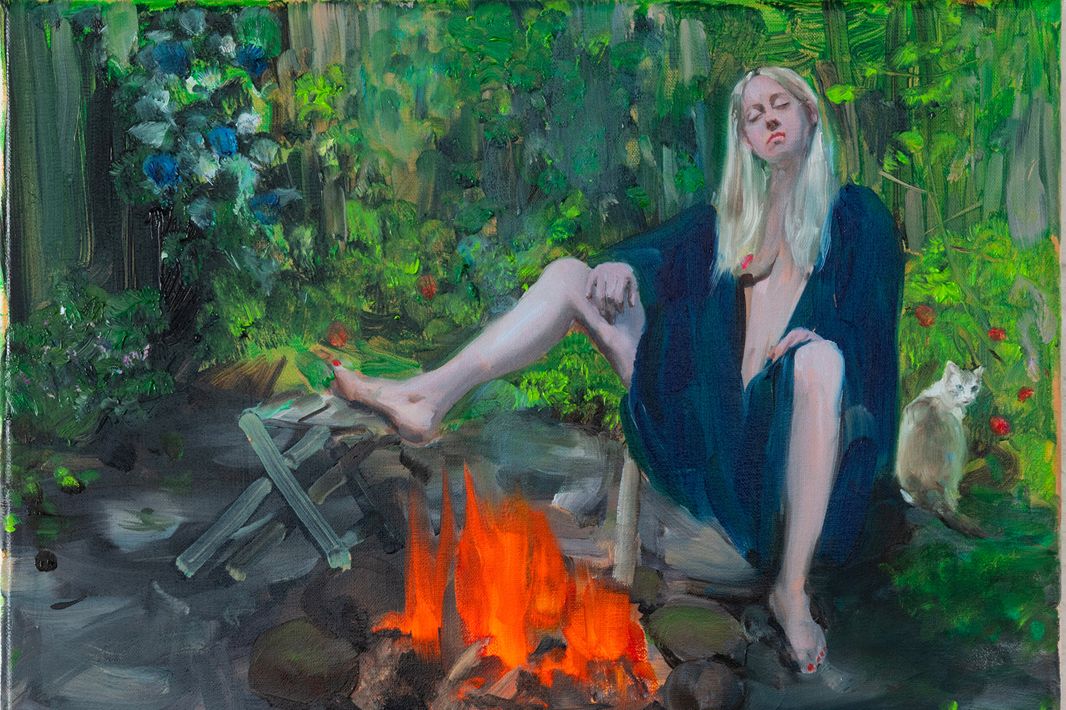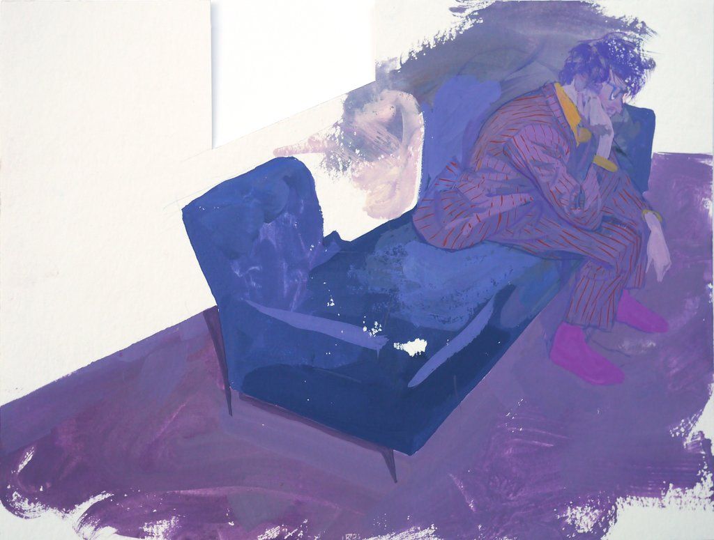 A. I start with a photo shooting of the model, basically friends in their own homes. And then with that material I go to the studio, select the chosen picture and start working. I work fast, and several paintings at the same time. I’m fast, one, because when raising kids there is not much time to waste, motherhood has definitely made me more efficient, and two because I’m certain that when I overdo and overthink a painting I totally fuck it up. Music and mate are part of my rituals to get on the mood.