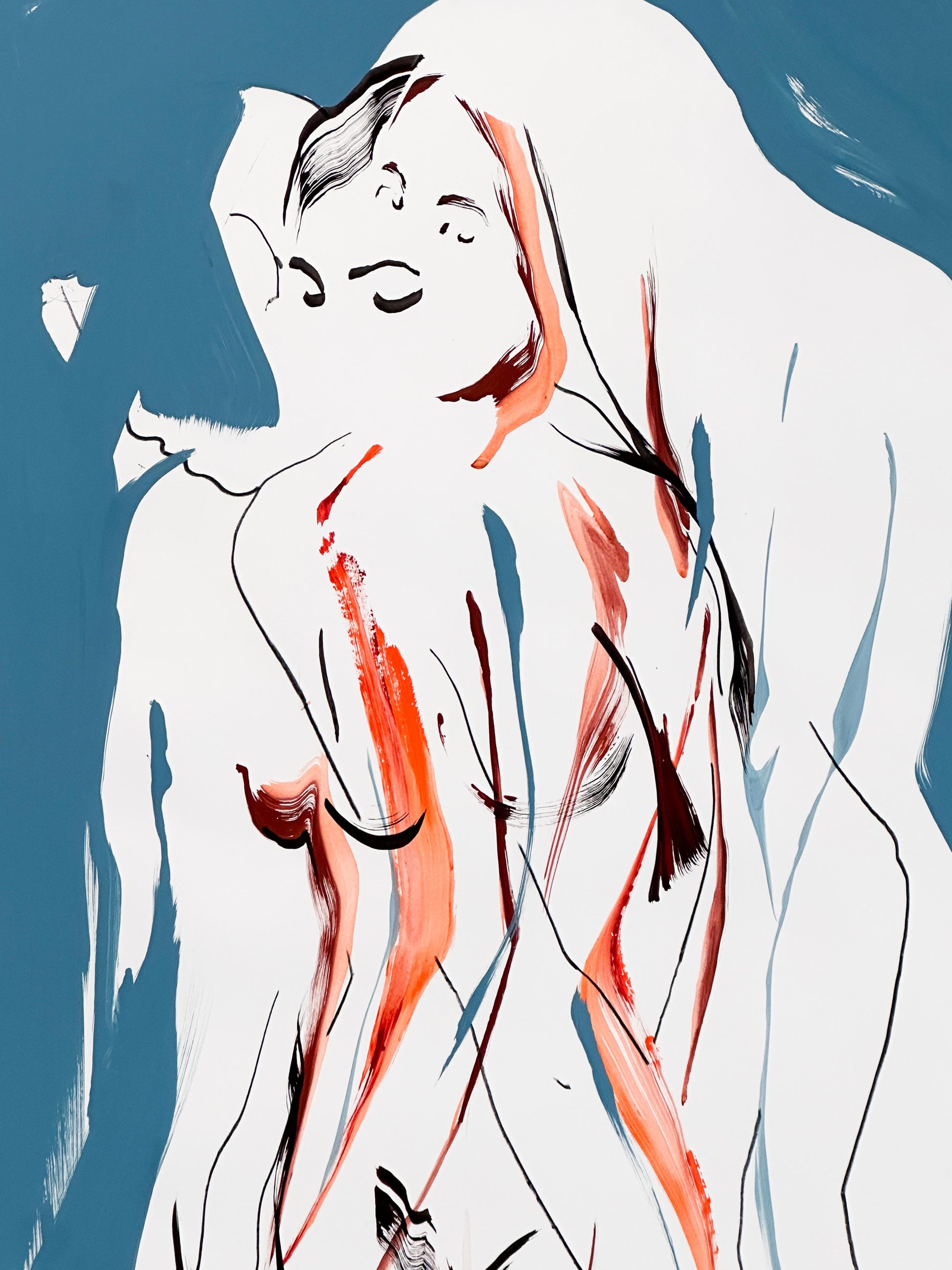 A contemporary painter in the fullest sense, Denis confronts the defining urgencies of our time: identity, migration, and the environment. His paintings depict a world in imbalance, where bodies and landscapes exist in a shared tension. Figures appear vulnerable and searching, suspended between departure and arrival, as if caught in shifting winds. Horizons remain uncertain; boundaries dissolve; bodies open themselves to time.