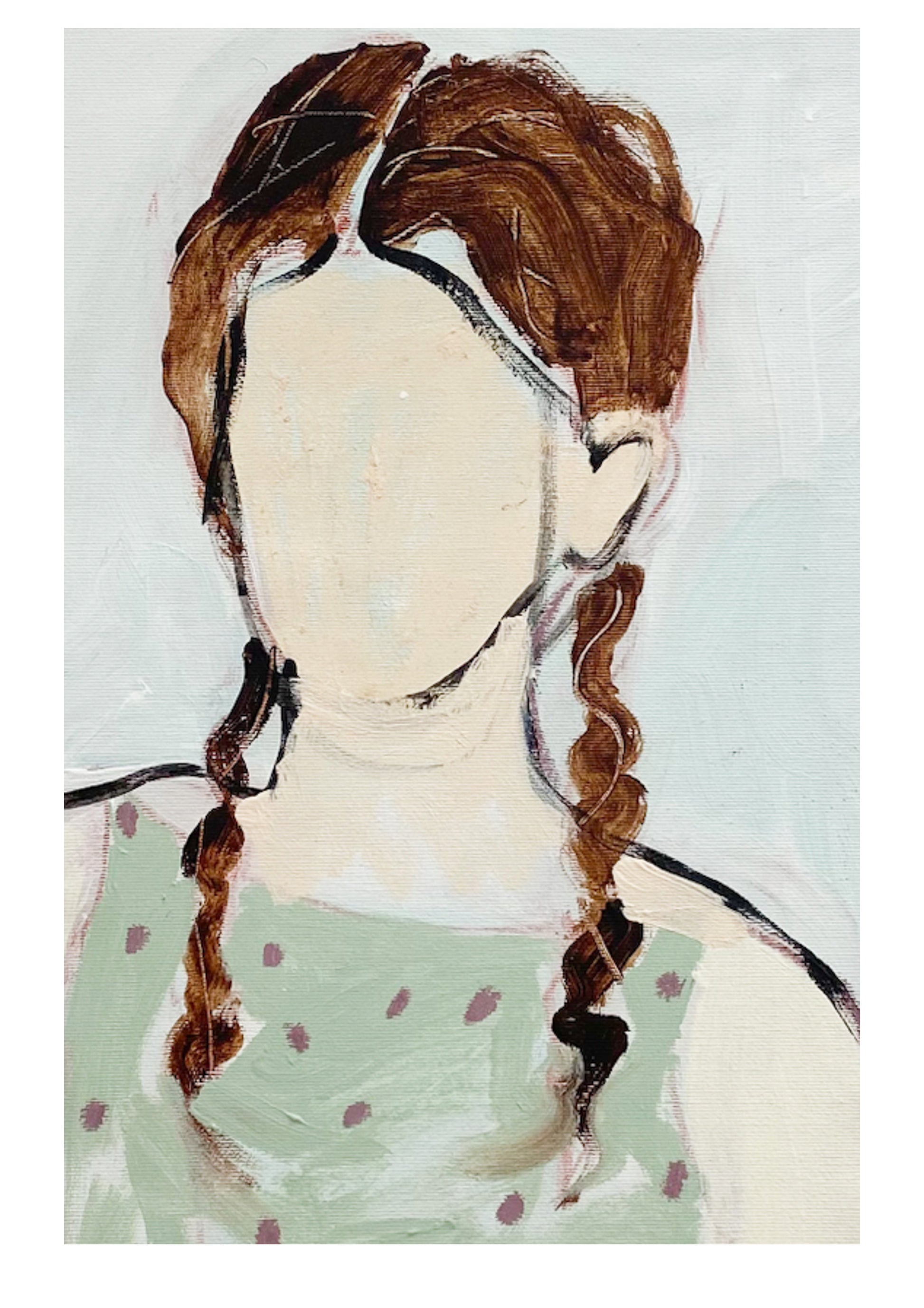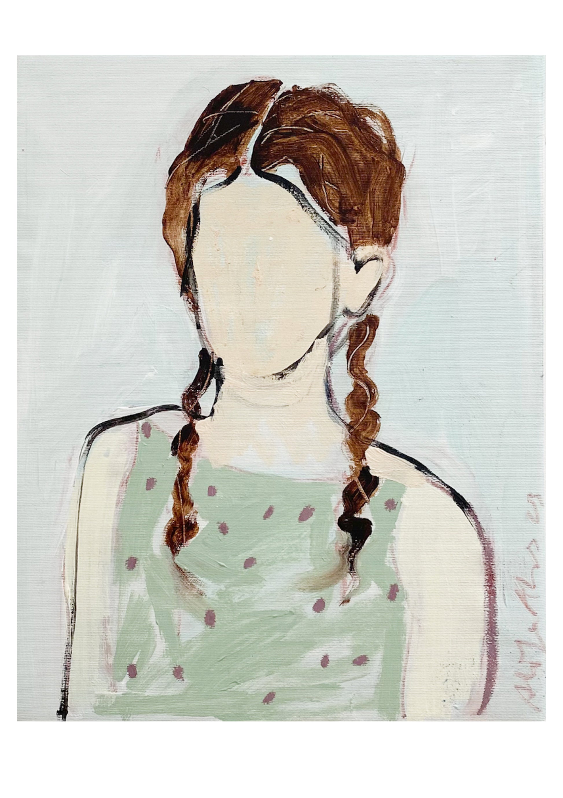 Born in Kharkiw, Ukraine Aliya Abs lives and works in Munich, Germany. Aliya Abs’s unique painting style involves a process of layering and obscuring the figures in her works, creating a sense of ambiguity and mystery. Her subjects are often depicted in vintage or historical settings, and the absence of facial features allows viewers to project their own emotions and interpretations onto the figures.