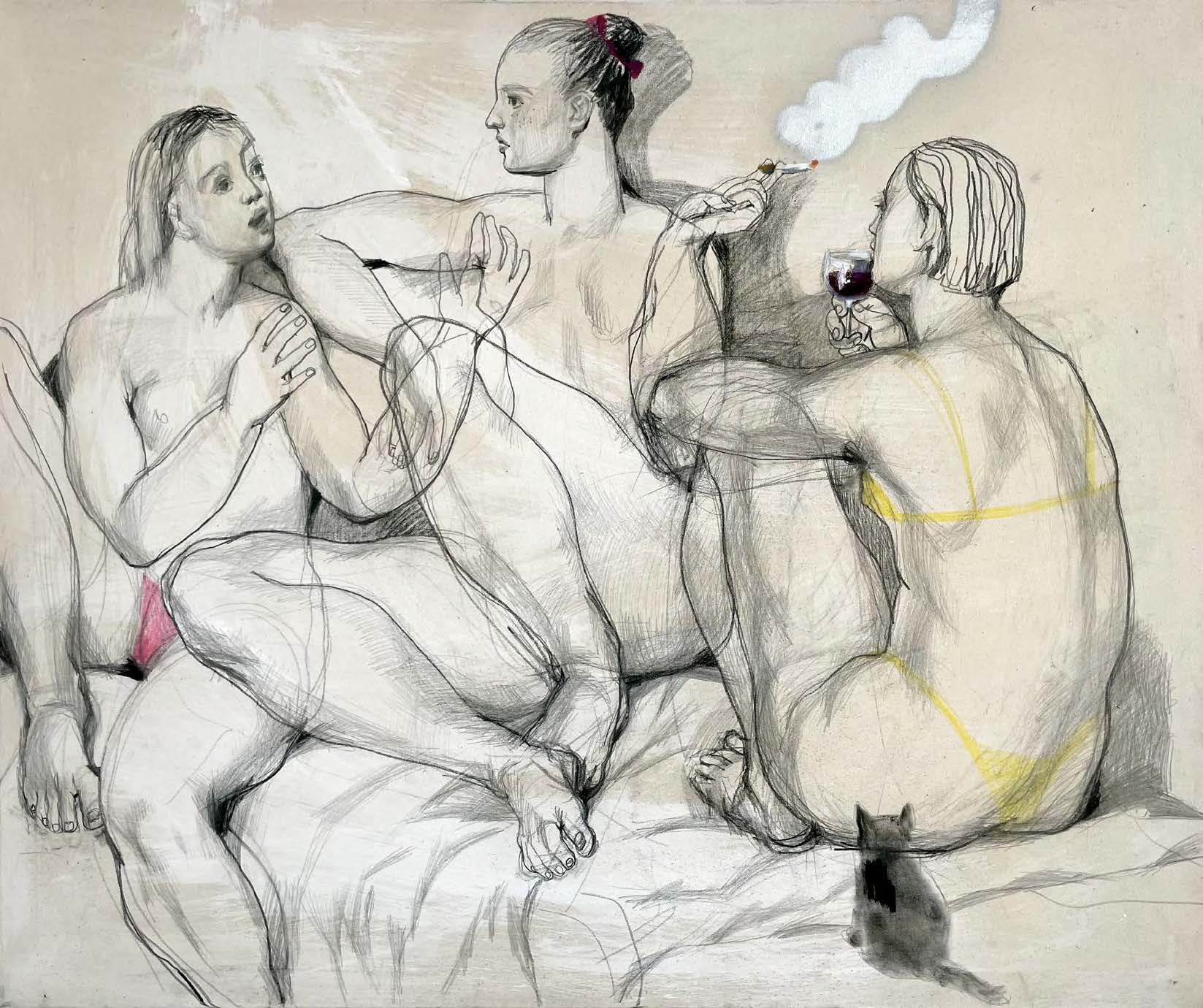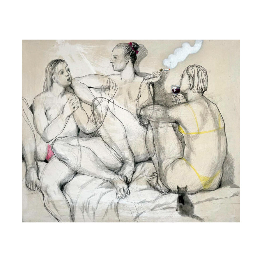 Kyiv-born and Berlin-based, Maria Naidyonova paints figures where emotion settles in the body between tenderness, distance, and daily life.