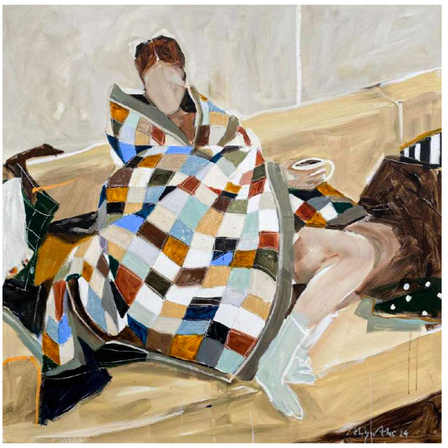 Aliya Abs created this exclusive collection from her memories of her stay in Paris. Her subjects are often depicted in vintage or historical settings, and the absence of facial features allows viewers to project their own emotions and interpretations onto the figures. Fragmented, childish, colorful, Aliya Abs' compositions breathe a sense of soft melancholy, a delicate perfume of temps perdu. Young girls are awkwardly posing, unsure of their postures, unsure of the game they should be supposed to play.