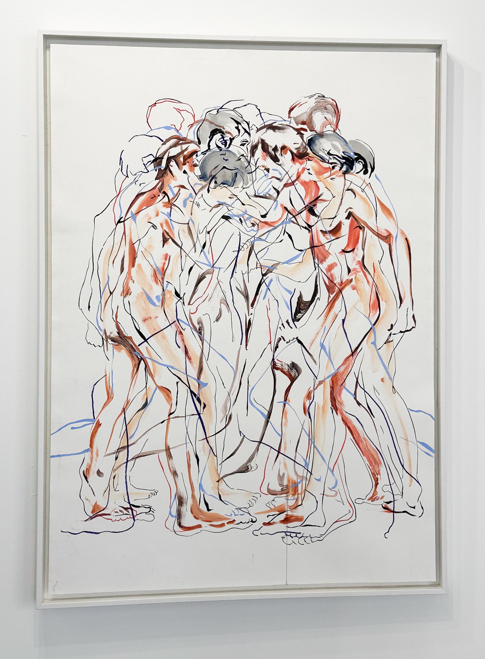 A contemporary painter in the fullest sense, Denis confronts the defining urgencies of our time: identity, migration, and the environment. His paintings depict a world in imbalance, where bodies and landscapes exist in a shared tension. Figures appear vulnerable and searching, suspended between departure and arrival, as if caught in shifting winds. Horizons remain uncertain; boundaries dissolve; bodies open themselves to time.