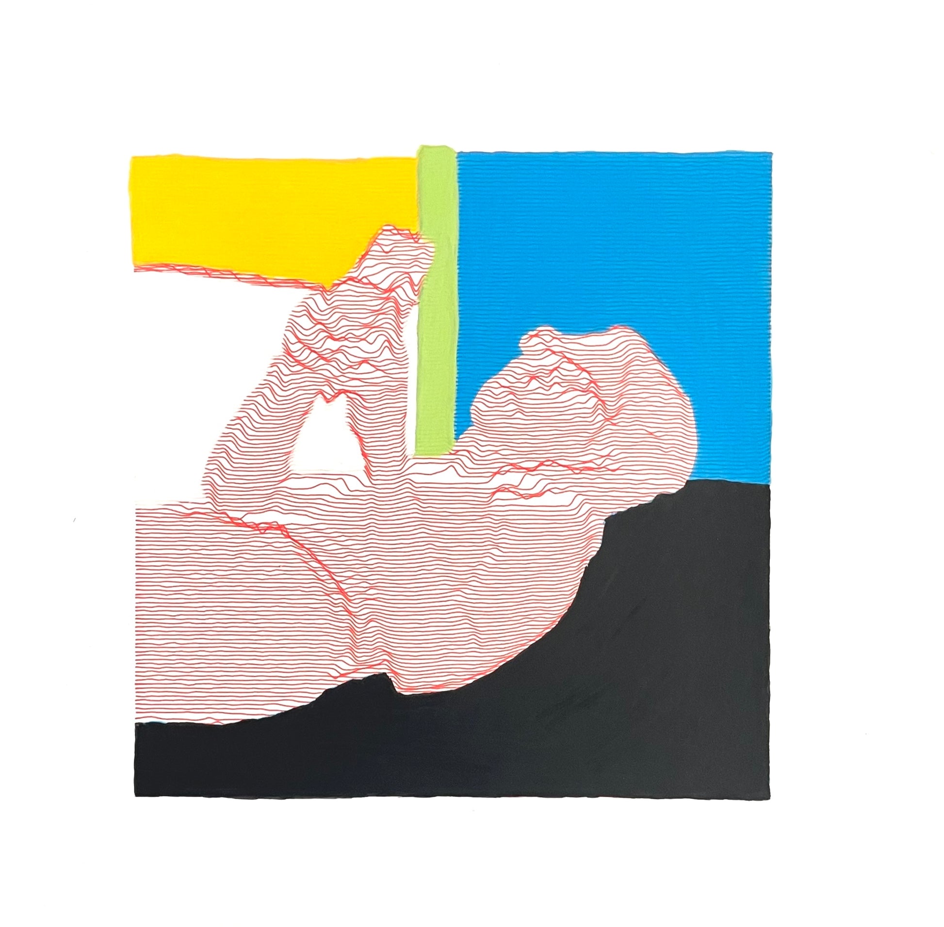 Fine tip Pen, Acrylic Machine Algorithmocally translated photograph into plotted linework, hand painted