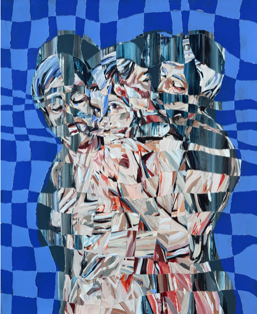 His practice explores communication, identity, the relationship to the environment, and human consciousness, through a dialogue between figuration and material experimentation, including oil and acrylic painting, works on paper, weaving, mosaic, sculpture, and printmaking.