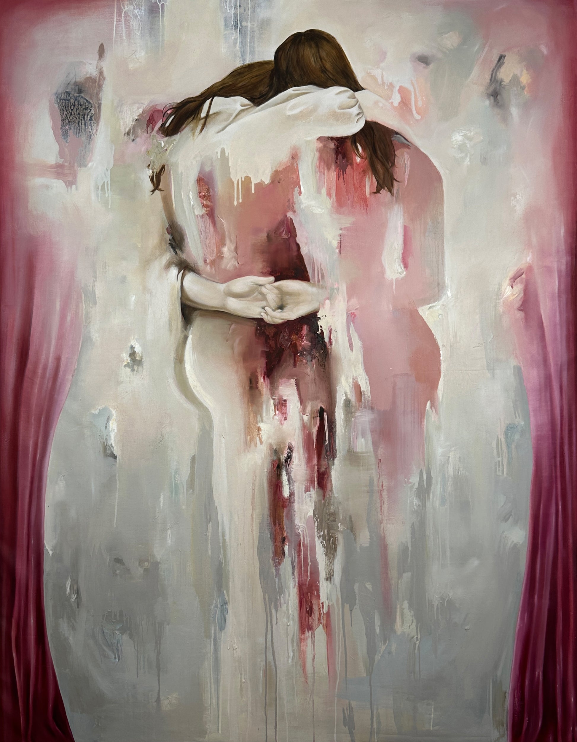 Her work blends classical techniques with modern abstraction, using vibrant colors, dynamic shapes, and layered brushstrokes to create a sense of history and ethereal beauty. Maria omits facial features in her figures, focusing on body language to convey universal human emotions, inviting viewers to connect with the shared experience of feeling.