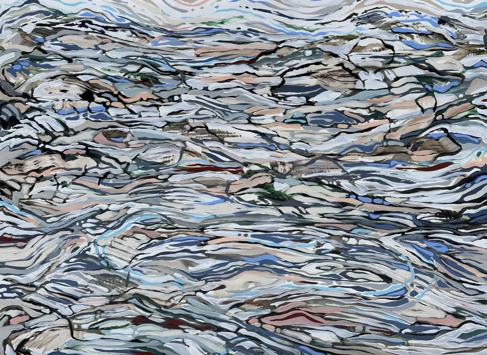 Art critic Richard Leydier writes of Denis’s work as landscapes on the brink: floods, broken dams, and human figures carried by currents. Between the backwaters of the Seine and low-lying islands threatened by rising seas, water becomes a unifying element—whether fresh or salt—through which humans struggle, confront, and connect.
